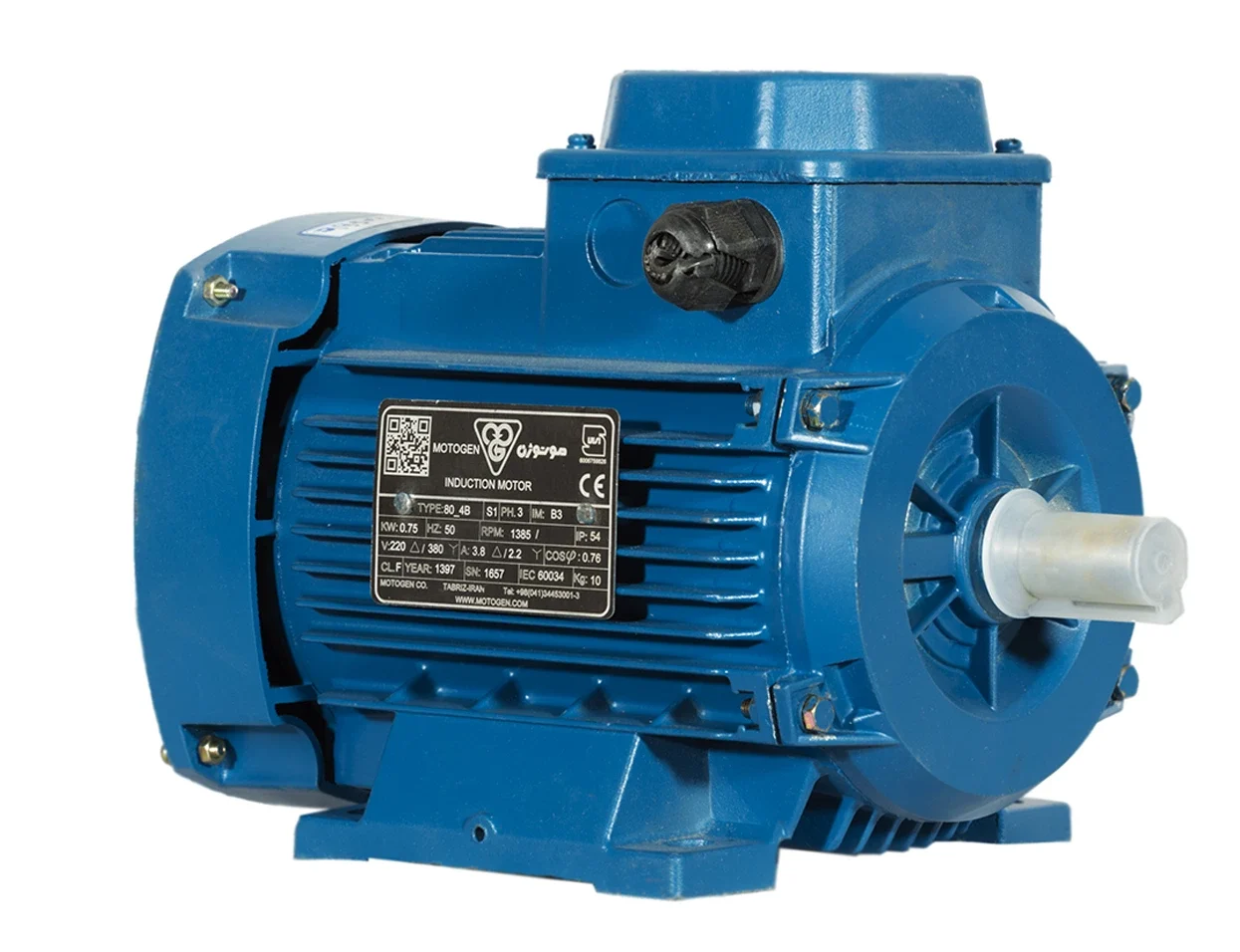 الکتروموتور موتوژن سه فاز ۱ اسب ۰.۷۵ کیلووات پوسته آلومینیوم ۱۵۰۰ دور